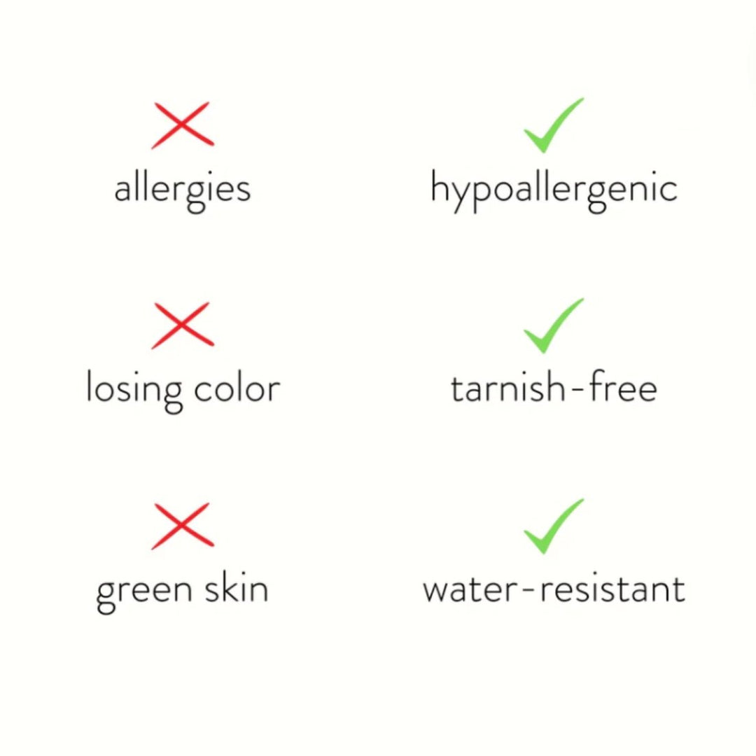 Made with waterproof stainless steel, you never need to worry about fading or tarnishing jewelry even again!