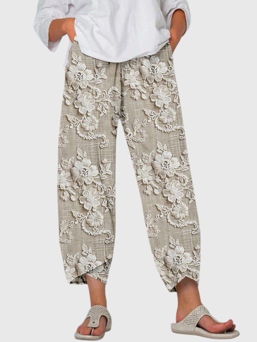אלנה - מכנסיים פרחוניים עם מתיחה לנוחות מקסימלית