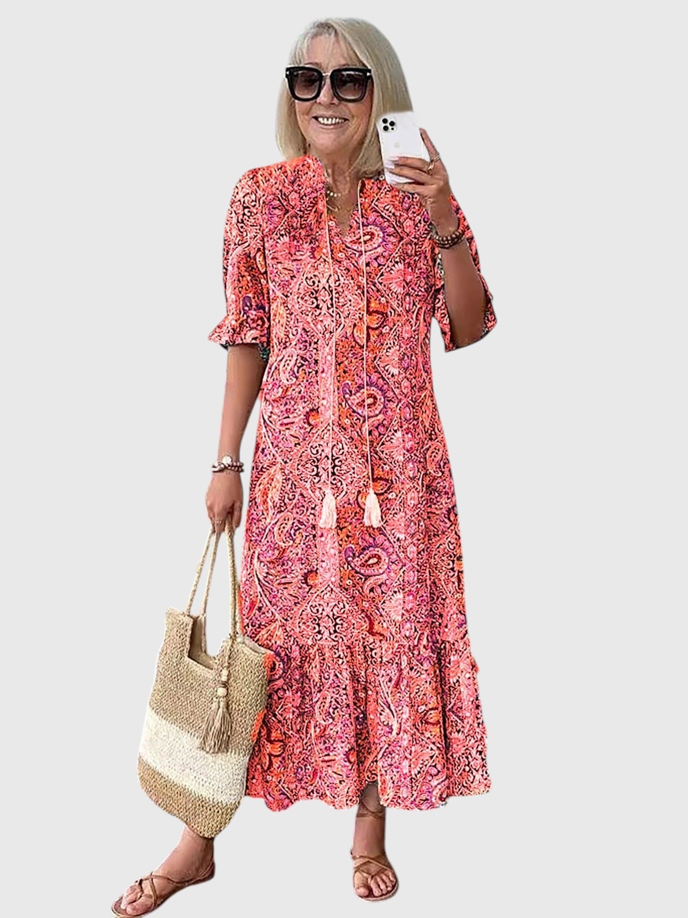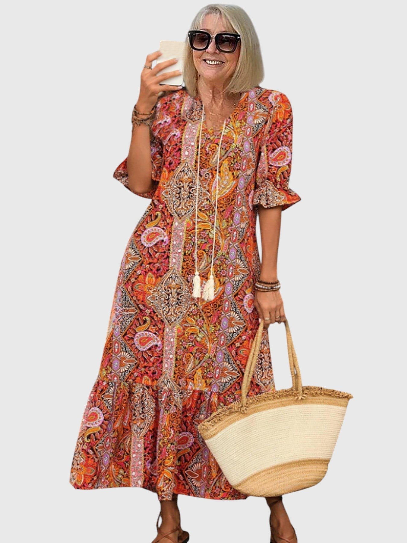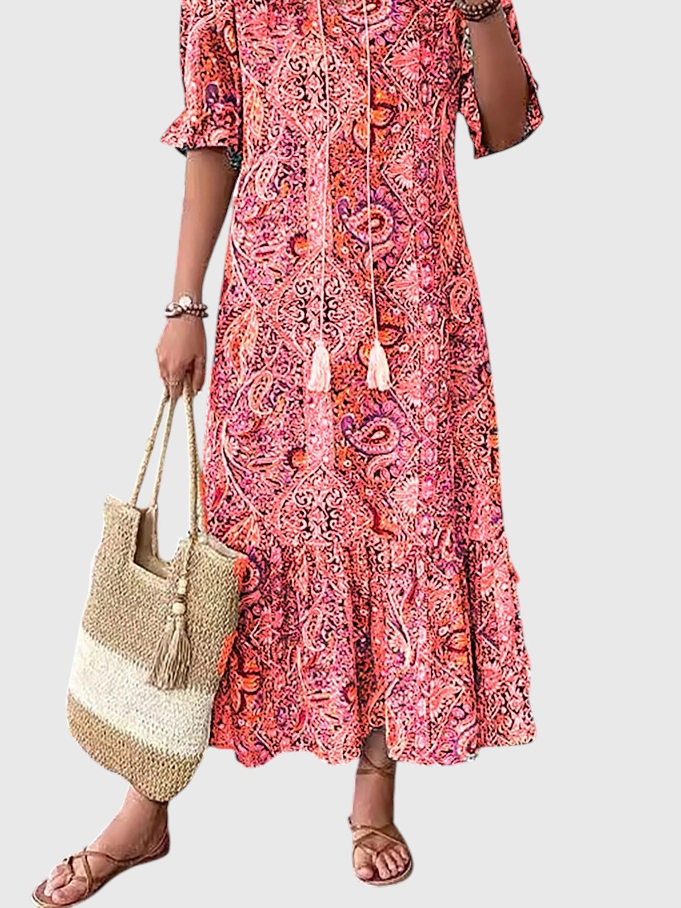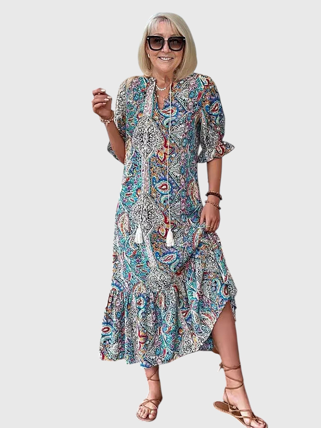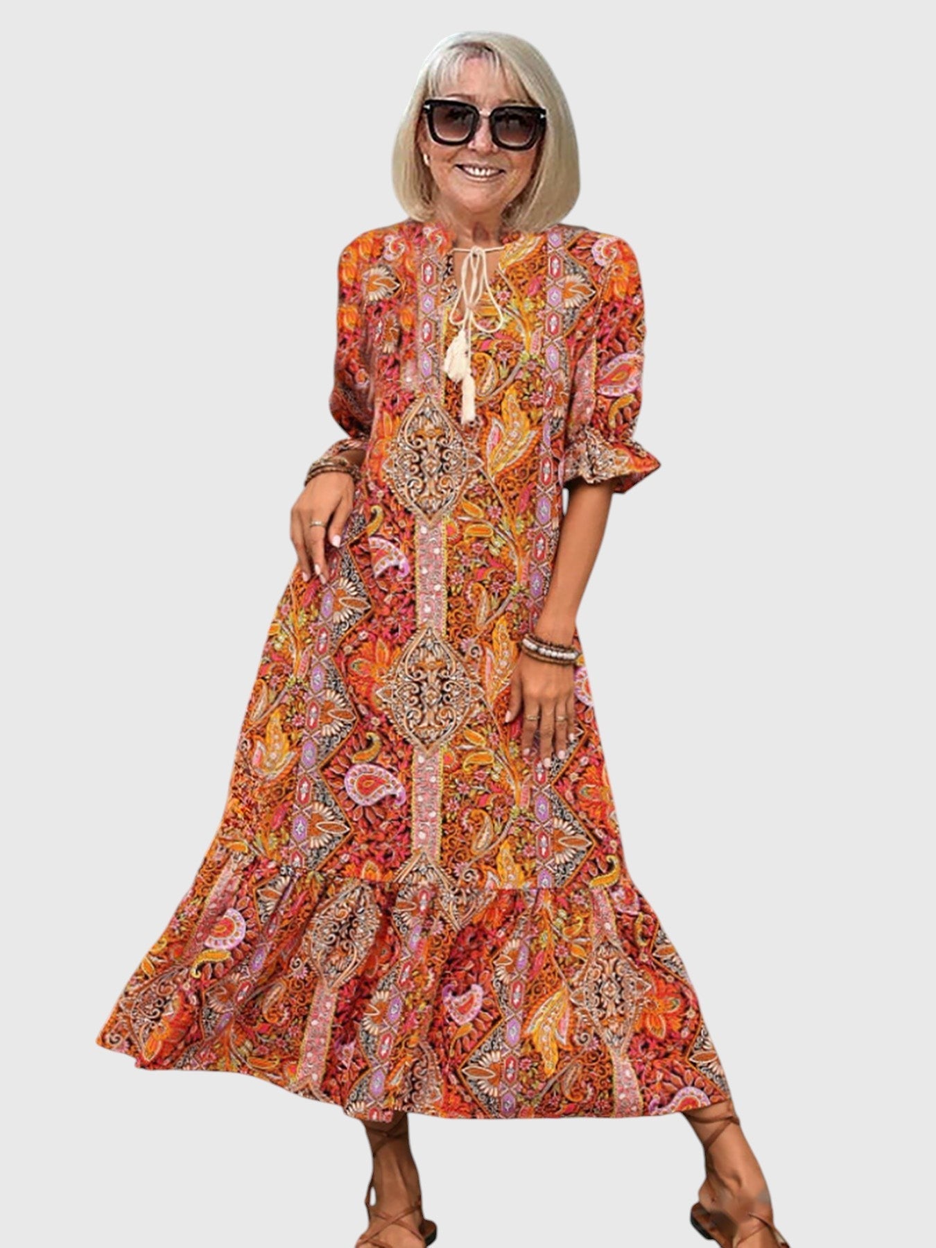 גלה את ג'ין - שמלת בוהו גרייס — היכן שנוחות רפויה פוגשת קסם אלגנטי. מיועדת לאישה המודרנית שמאמצת אווירה קלילה ונינוחה, שמלה זו מביאה אלגנטיות קלה שזורמת איתך. עם בד כותנה רך, קו מותן מחמיא, ופרט רומנטי של קשירה, היא מושלמת לימים חמים, חופשות נינוחות, וכל מה שביניהם.