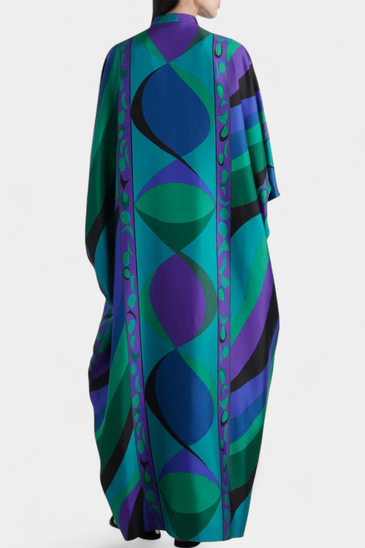 הקפטן פיורלה מציע סילואטה זורמת ורפויה, שמחבקת את הגוף שלך ומאפשרת לך לנוע בחן. ההדפס Iride, עם הספירלות הפסיכדליות שלו, מוסיף נופך אומנותי לכל הופעה.